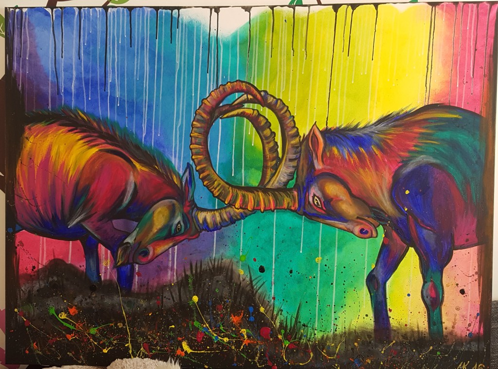Acrylfarben, Gouache, Spray-Art, Drucktechniken, Alkoholtinten usw. Hier male ich ganz nach Lust uns Laune!